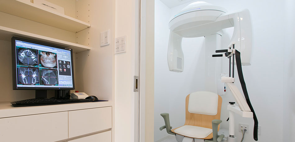 撮影した断層写真を元に3Dデータを作成し、痛みや症状の原因をミクロン単位で診断することができます。安全安心なインプラント治療に欠かせない装置です。